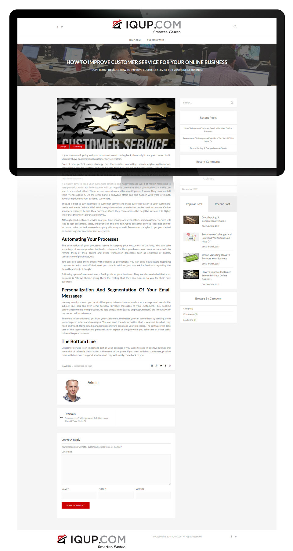 Wordpress blog developed to support IQUP's B to C market. Development Tools and Software: Illustrator, Photoshop, Dreamweaver, HTML 5, Wordpress https://blog.iqup.com/